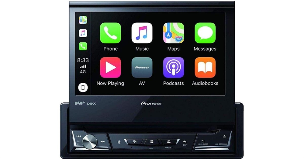 1-DIN 7" 24-bit true colour, clear type resistive flip-out touchscreen-multimedieafspiller med nem smartphone-forbindelse via et enkelt USB-kabel, som understøtter Apple CarPlay, og Android Auto, DAB/DAB+ Digital Radio, Waze (via Apple CarPlay/Android Auto), Bluetooth og en 13-bånds GEQ