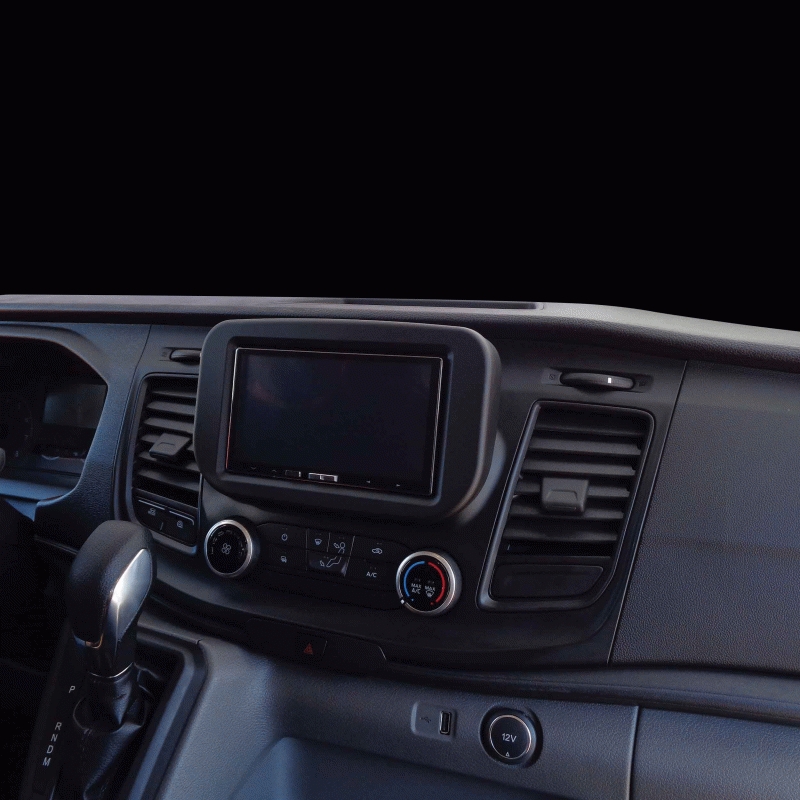 Ford Transit 2020 Onwards LHD Double DIN Single Chassis car radio fascia adapter (MATT BLACK)