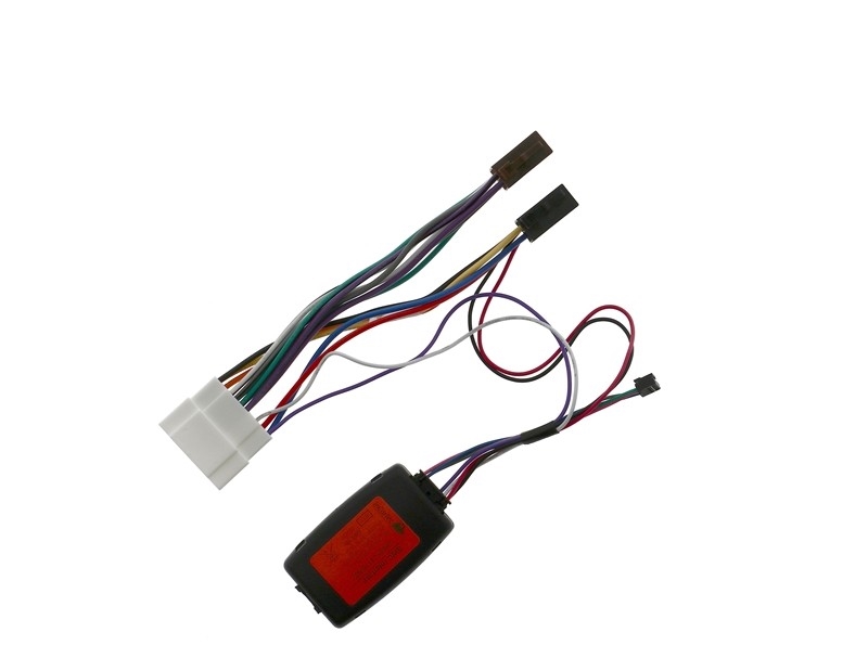 This interface retains the use of the steering wheel audio controls with an aftermarket head unit by adapting from the 20 pin Honda connector to aftermarket ISO connectors.