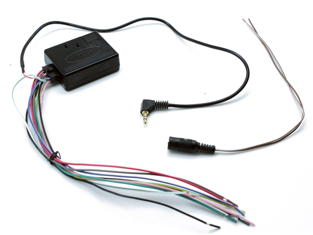 Universal steering wheel control interface for popular US vehicles including Buick, Chrysler, Chevrolet, Jeep, GMC, Pontiac. Compatible with all leading brand of aftermarket head unit. Can be automatically or manually programmed for the vehicle.