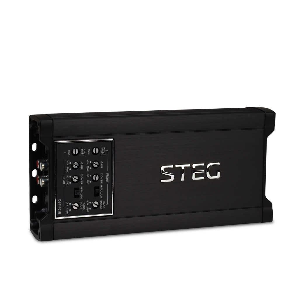 DSTseries, the name of these new electronics. represents the commitment taken by STEG in creating amplifiers designed, in addition to sound, for competitions. The power available, the high current and the impressive dynamics are among the features guaranteed by a project that has spared nothing. The massive use of very powerful semiconductors, the distribution of power on various transformers in parallel and the use of an extremely effective dissipating system, guarantee all the energy and reliability necessary to continuously pilot any type of load, up to 2 ohm.