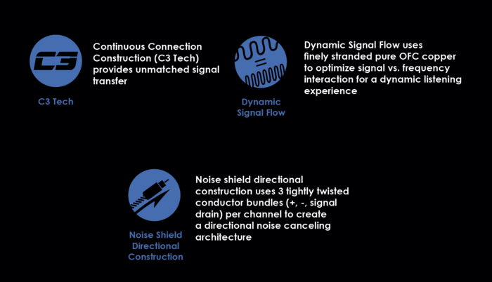 Looking closer shows just how these connectors ensure the integrity of critical connections in your system. C3 tech (Continuous Connection Construction) promises no breaks in the signal chain, allowing for unmatched signal transfer. The triple polishing of the pure fiber optical cable creates maximum light transfer, which reduces the possibility of data errors, delivering pure sound. Finally, the Quad-Lock precision connector resists vibration to keep the connection intact.