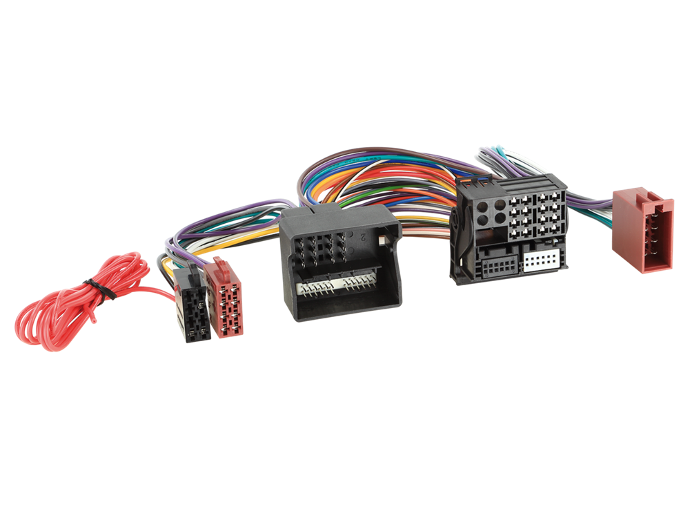 Adapter cable to connect various MG cars to standard ISO connectors to enable the fitting of an aftermarket head unit.