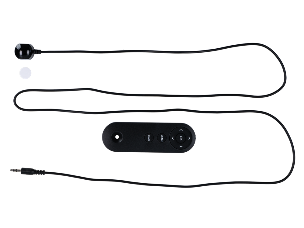 Infrared remote control for accessing the i-dapter interface settings in vehicles without steering wheel remote control.