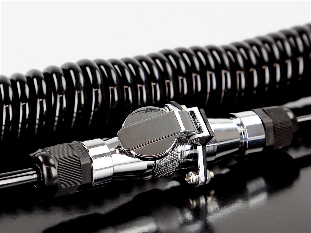 Patent fasteners with spiral cable for easy cable separation from the vehicle and trailer.