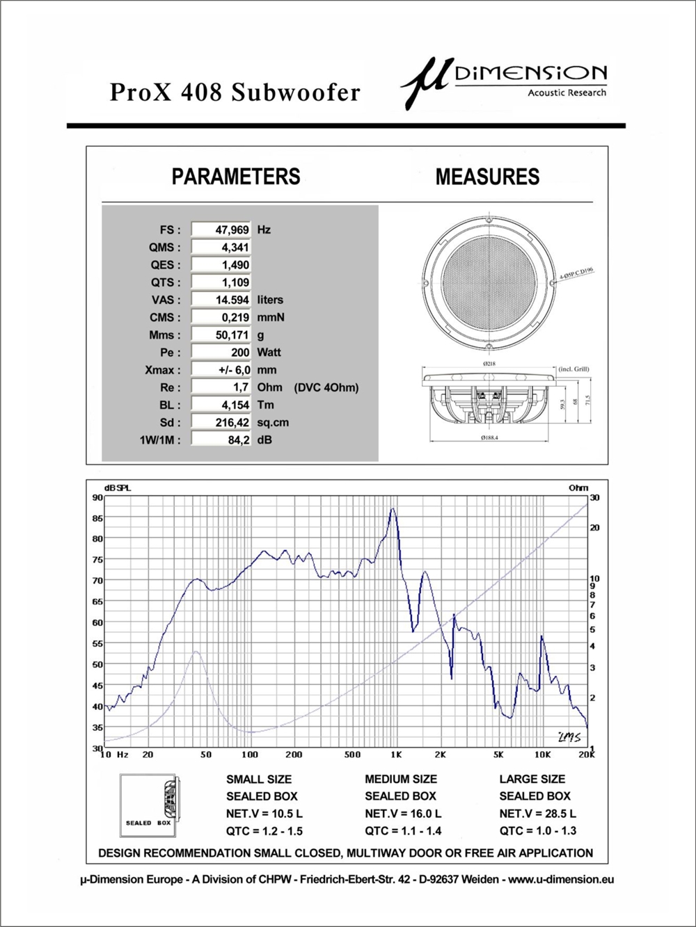 20cm/8" Mid/Subwoofer - ProX Carbon/Hexagon Dual layer Cone, Grill, Diecast basket