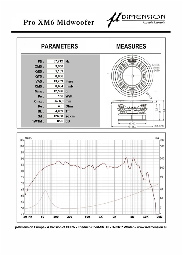 16cm DIN size High End Mid, Carbon/PMI Dual layer Cone, Grill, Alu Phaseplug, Diecast, Screwterminal, Neodym,