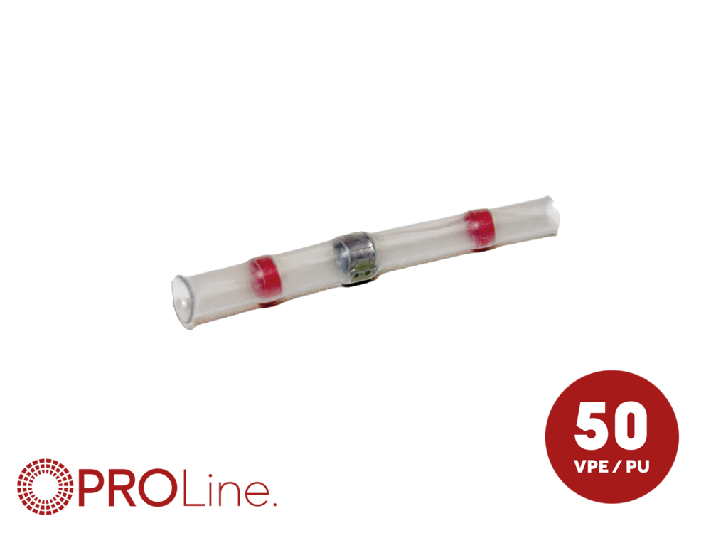 Heat-shrinkable solder connector with low-temperature solder ring and flux for dust- and moisture-proof connection or extension of tinned or bare copper strands in the automotive industry, agricultural machinery sector and commercial vehicle sector.